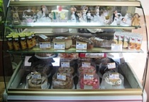 Магазин принимает заказы на изготовление тортов, куличей, свадебных караваев для встречи молодых. Вы можете выбрать цвета оформления торта, вес, надписи (надписи исполняются кремом и шоколадом), также торт можно украсить фигурками (жених и невеста, новорождённый и др.). Заказы принимаются на любой заявленный вес торта.