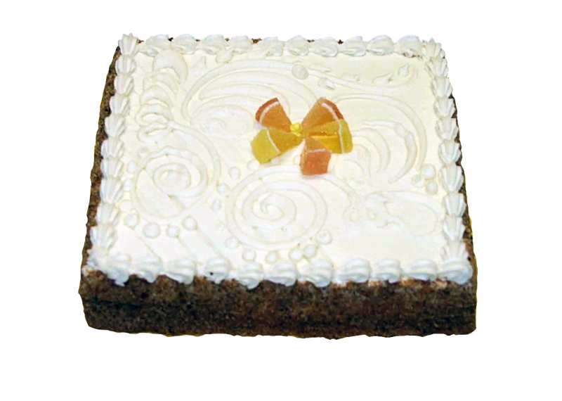 Описание продуктаДва слоя песочного полуфабриката соединены творожным кремом. Поверхность покрыта и украшена этим же кремом и цукатами. Боковые поверхности отделаны бисквитной крошкой.