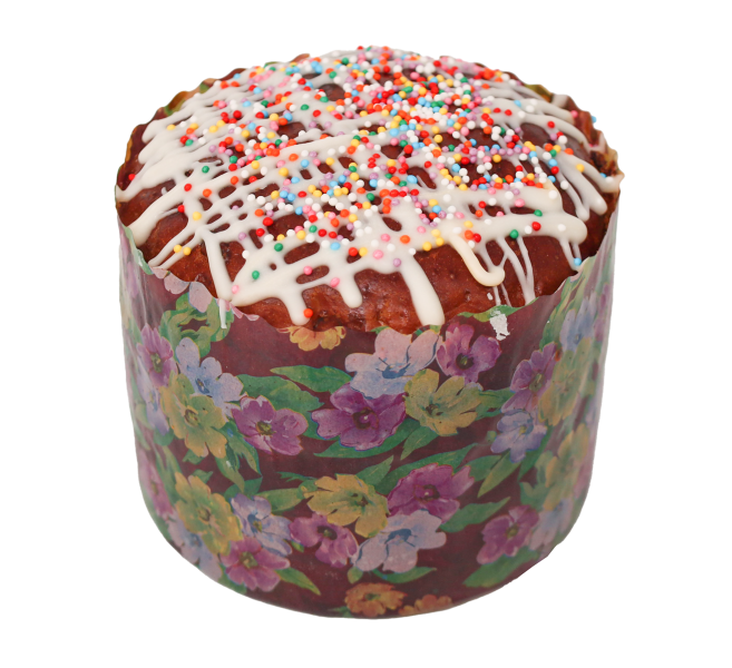 Описание продуктаДрожжевой кекс из муки пшеничной высшего сорта с добавлением сушеного винограда. Поверхность заглазирована кондитерской молочной глазурью и украшена декоративной посыпкой.