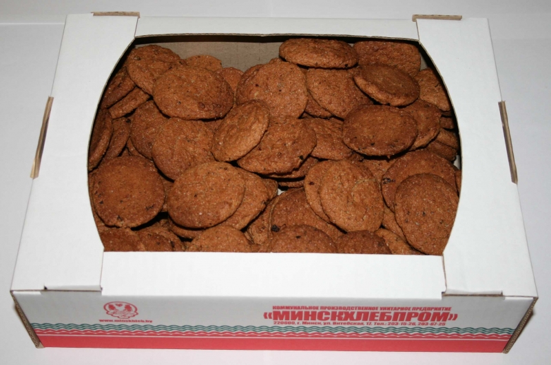 Описание продуктасахар, мука пшеничная первого сорта, маргарин (масла растительные рафинированные дезодорированные, масла растительные модифицированные рафинированные дезодорированные, вода, соль пищевая поваренная йодированная, сыворотка сухая, сахар, эмульгатор- моно-и диглицериды жирных кислот, консервант – бензоат натрия, краситель - ?- каротин, ароматизатор «Масло сливочное»), мука овсяная, виноград сушеный, разрыхлитель- натрий двууглекислый, соль поваренная пищевая йодированная, ароматизатор - ванилин, вода питьевая.