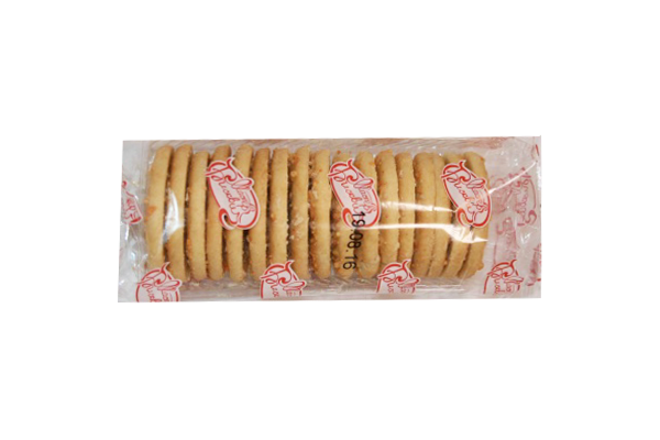 Описание продуктаСостав: мука пшеничная высшего сорта,маргарин, сыр, сахарная пудра, меланж яиц кур, соль поваренная пищевая йодированная, сахар, разрыхлители: соли углеаммонийные, натрий двууглекислый, регулятор кислотности, лимонная кислота.