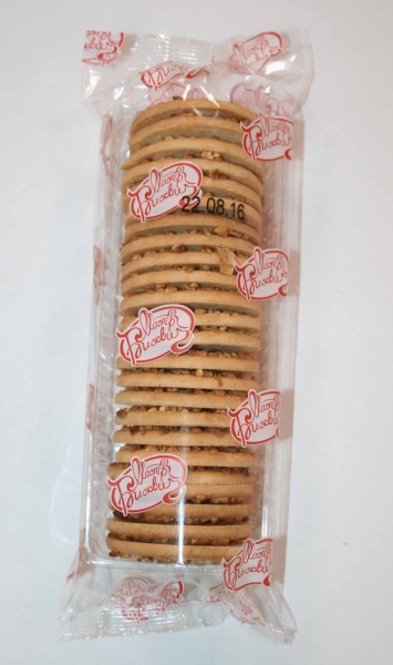 Описание продуктаСостав: мука пшеничная высшего сорта, сахарная пудра, маргарин, сахар, ядро арахиса дроблёного, яйца куриные, соль поваренная йодированная, сахар, разрыхлители: соли углеаммонийные, натрий двууглекислый, вода питьевая.