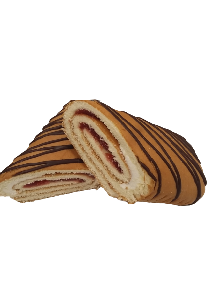 Описание продуктаБисквитный полуфабрикат, прослоенный начинкой жировой и ягодным наполнителем, свернутый в виде рулета. Поверхность задекорирована глазурью кондитерской какаосодержащей.