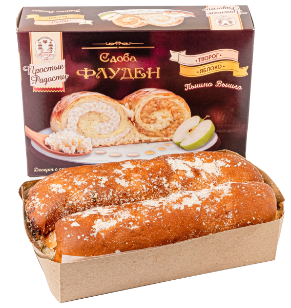 Описание продуктаМука пшеничная высшего сорта, вода питьевая, полуфабрикат: начинка фруктовая «Яблоко», творог 9 %, сахар, яйца куриные пищевые, концентрат для пирогов, булочных и мучных кондитерских изделий, маргарин «Молочный», дрожжи хлебопекарные прессованные, молоко сухое обезжиренное, соль йодированная, пищевая добавка.