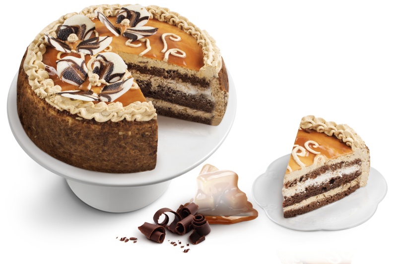 Коржи - бисквит "Шоколадка", пропитанный сиропом. Прослойка на основе растительных масел с добавлением вареного сгущенного молока. Отделка - желейная масса с ароматом карамели, украшенная кремом и глазурью.