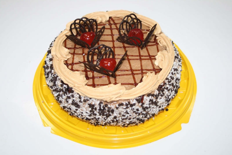 Описание продуктамука пшеничная высшего сорта; ароматизатор Ром [ носитель пропиленгликоль Е1520, вкусоароматический компонент]; коньяк [коньячные спирты, вода умягчённая, сахарный сироп, пищевая добавка: краситель натуральный – сахарный колер ]; вино десертное [пищевые добавки: антиокислитель Е220, консервант Е 202]; глазурь кондитерская какаосодержащая [сахар, заменитель какао-масла ( масла растительные лауринового типа рафинированные дезодорированные, эмульгаторы сорбитан тристеарат, лецитин), какао-порошок , эмульгаторы - лецитин соевый, Е476, ароматизаторы.]; кокосовая стружка; регулятор кислотности - кислота лимонная; сахар; разрыхлитель - натрий двууглекислый; яйца куриные пищевые; комплексная пищевая добавка “Монопалс-100” [вода, сахар, эмульгатор Е471, влагоудерживающий агент Е1520, эмульгаторы Е475, Е470]; ; кондитерская паста т.м. Мастер Мартини “Каравелла крем какао” (негидрогенизированные растительные масла и жиры (масла (соевые, рапсовые, подсолнечные и кукурузные в различных пропорциях), жиры ( пальмовые) обезжиренный какао порошок, сахар, лесной орех, эмульгатор Е 322 – соевый лецитин), ароматизатор); крем на растительных маслах «Арибель» [вода питьевая; жир растительный (рафинированное, дезодорированное пальмоядровое масло, эмульгатор Е322); сахар-песок; комплексная пищевая добавка Стабимульс ICR34 (эмульгаторы ( Е464,Е471,Е475,Е481), регуляторы кислотности Е331, Е339, агент антислеживающий Е460, загуститель Е466, желатин, антиокислитель Е385, загуститель Е412, антиокислитель Е304, глюкоза); декстроза моногидрат; агент влагоудерживающий Е1520; эмульгатор стабисол SMS20-Е435; соль поваренная йодированная, ароматизатор пищевой идентичный натуральному «Пломбир», консерванты: сорбат калия, бензоат натрия]; глазурь кондитерская (дробсы) [пудра сахарная, заменитель масла какао, какао-порошок, эмульгатор лецитин, ароматизатор идентичный натуральному ванилин];глазурь желеобразная «зеркальная карамель» [сахар, сироп глюкозо-фруктовый, вода, стабилизатор (Е406, Е440), регулятор кислотности (Е330), консерванты (Е202, Е211), ароматизатор идентичный натуральному «Карамель-сливки», красители (Е150, Е155, Е122,Е102,Е133]; молоко сгущенное с сахаром вареное «Лакомка» [нормализованное молоко, сахар ( сахароза, лактоза), антикристаллизатор-ферментный препарат микробного происхождения лактаза, комнлексная пищевая добавка «Стабилизационная система «Эко К» (загуститель Е 1422, стабилизаторы Е 415, Е 410), регулятор кислотности – пищевая сода»]; черешня засахаренная красная [черешня, сахар, глюкозно-фруктовый сироп, лимонная кислота (Е330), ароматизатор Вишня, консерванты: Е211, Е202, Е220, красители: Е129, Е122]; ароматизатор «Кофе» [носители: пропиленгликоль Е 1520, вкусоароматическая часть], ароматизатор Миндаль [носитель триацетин Е1518, вкусоароматический компонент]; вода питьевая.