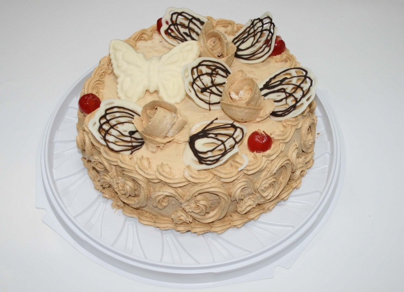 Описание продуктакрем на растительных маслах «Арибель»[вода питьевая; жир растительный (рафинированное, дезодорированное пальмоядровое масло, эмульгатор Е322); сахар-песок; комплексная пищевая добавка Стабимульс ICR34 (эмульгаторы ( Е464,Е471,Е475,Е481), регуляторы кислотности Е331, Е339, агент антислеживающий Е460, загуститель Е466, желатин, антиокислитель Е385, загуститель Е412, антиокислитель Е304, глюкоза); декстроза моногидрат; агент влагоудерживающий Е1520; эмульгатор стабисол SMS20-Е435; соль пищевая поваренная йодированная; ароматизатор пищевой идентичный натуральному «Пломбир»; консерванты: сорбат калия, бензоат натрия]; творог мягкий [творог «Мягкий» обезжиренный (молоко обезжиренное, закваска молочнокислых микроорганизмов, молокосвертывающий ферментный препарат животного происхождения), сливки]; молоко сгущенное с сахаром вареное «Лакомка»[нормализованное молоко, сахар(сахароза, лактоза), антикристаллизатор – ферментный препарат микробного происхождения лактаза, комплексная пищевая добавка «Стабилизационная система «ЭКО К» (загуститель Е 1422, стабилизаторы Е 415, Е 410), регулятор кислотности – пищевая сода.]; глазурь молочная [сахар, заменитель какао-масла (масла растительные в натуральном и модифицированном виде лауринового типа рафинированные дезодорированные (пальмоядровое), эмульгаторы сорбитан тристеарат, соевый лецитин), сыворотка молочная сухая, эмульгаторы – лецитин соевый, Е476,пищевой ароматизатор «Ванилин»]; сахар; яйца куриные пищевые, мука пшеничная высшего сорта, клубника в желе [клубника, сахар, вода, загустители - модифицированный крахмал, камедь рожкового дерева, регулятор кислотности – цитрат натрия, лимонная кислота, ортофосфат кальция 3 – замещенный, консервант, краситель, ароматизатор]; смесь для бисквитов Биска Мульти Бейс [пшеничный крахмал; разрыхлители: Е450, Е500; рисовая мука; эмульгаторы: Е471, Е475, Е332; декстроза; стабилизатор Е415; соль; энзим - (пшеница)]; глазурь кондитерская какаосодержащая [сахар, заместитель какао-масла (масла растительные лауринового типа рафинированные дезодарированные, эмульгаторы сорбитан тристеарат, лецитин), какао-порошок, эмульгаторы – лецитин соевый, Е 476; ароматизаторы] ; черешня засахаренная красная [черешня, сахар, глюкозно-фруктовый сироп, лимонная кислота (Е330), ароматизатор «Вишня», консерванты: Е211, Е202, Е220, красители: Е129, Е122], коньяк [коньячные спирты, вода умягчённая, сахарный сироп, пищевая добавка: краситель натуральный – сахарный колер ], вино десертное Кагор[пищевые добавки: антиокислитель Е220, консервант Е 202]; украшения сахаристые [сахар, мука, рісовый крахмал, мальтодекстрин, красители Е174,Е100, Е120.], ароматизатор «Ром» [ носитель: пропиленгликоль Е1520, вкусоароматическая часть ]; вода питьевая.