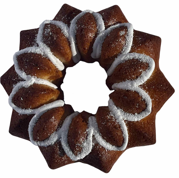 Описание продуктаСладкий творожный кекс из муки высшего сорта с легким ароматом ванили. Поверхность украшена сырцовой глазурью и посыпана кокосовой стружкой.