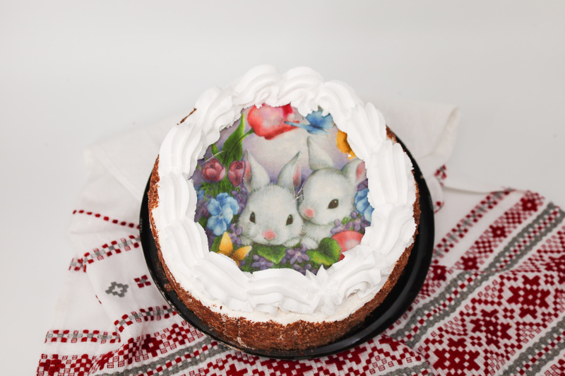 Описание продуктаСлои бисквитного полуфабриката с какао-порошком и слой воздушно-орехового прослоены поочередно сливочным кремом, смешанным с кусочками шоколадной глазури, бренди и сливками с вареньем. Верхняя поверхность покрыта суфле, частично заглазирована шоколадной глазурью и отделана вафельным декором и суфле.